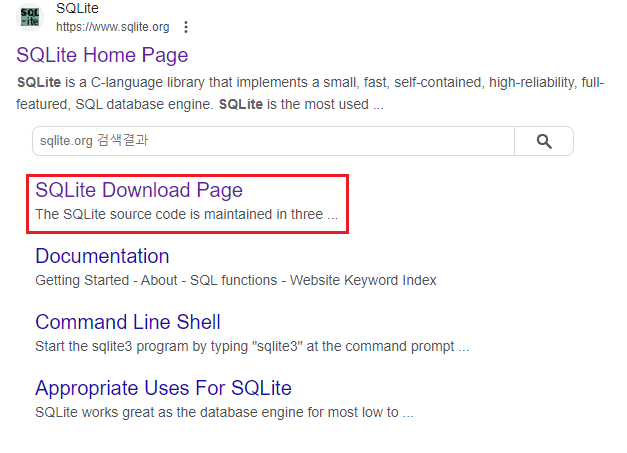 우선 Google에 SQLite 라고 검색하면 아래와 같은 창이 뜬다.