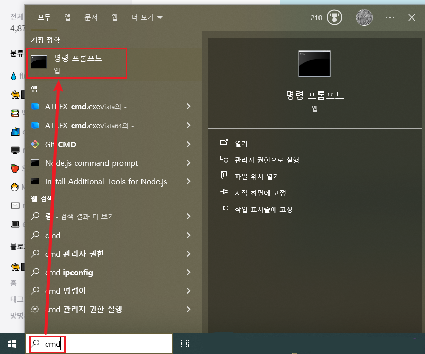 먼저 [Win + R] 혹은 윈도우버튼을 눌러 실행창을 열고 'cmd' 를 입력하여 명령 프롬프트를 띄우자.